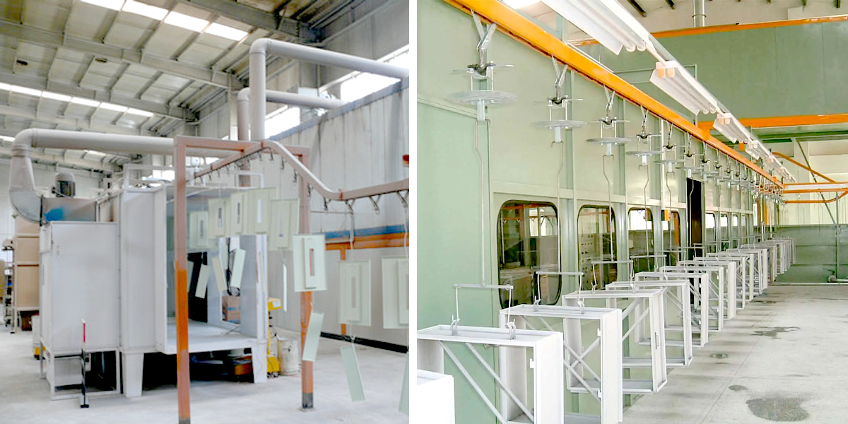 For the powder-coating of small batches, especially in special colours, the plant offers a manual cabin as well.